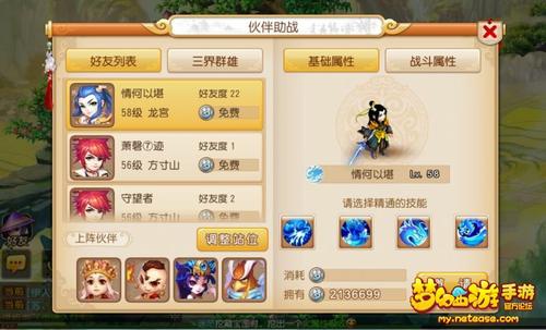 好友助战相对于三界群雄助战,有什么优点?我们知道,三界群雄拥有更多的个性技能供玩家选择,这些技能往往很强势,比如孙悟空的四连在PK中就是个大BUG。但是好友助战并非因此而黯淡无光。好友助战系统中的好友拥有相对于三界群雄而言,更为系统有针对性的门派技能(比如大唐官府好友,他们的门派技能就是纯粹的攻击技能)。其次,免费的三界群雄每周都会发生变化,但是好友助战则只根据你的联系人列表而发生变化。另外,你可以自己设置的好友精通技能,让他们在团队中获得不同的定位(比如让一个普陀山玩家精通五行咒,这样一个传统意义上的治疗门派就变成了输出型门派)。最后,好友助战能够有效地隐蔽身份,在诸如竞技场这样的单P舞台中,玩家一看到孙悟空就已经知道他拥有什么技能,而看到你的好友的幻影却只能在他出手后才能估算出来大概,这就极具迷惑性了。