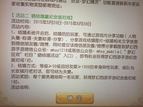 (2)提交微信朋友圈/微博分享截图到梦幻西游手游微信公众号- mhxy1218或易信公众号- mhxy_mobile("梦幻狂欢"栏目"晒结婚活动"入口)