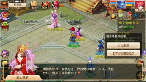 在长安(138,87)“爱心使者”处领取任务“讨伐邪灵”。每人每天只能领取一次活动,取消任务不可重新领取。领取成功任务后,需要进行5场战斗,每场战斗均有机会获得爱心一颗。
