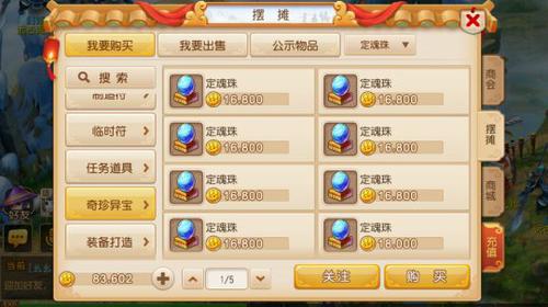 以小编所在服务器为例,在每周限购取消金刚石和定魂珠之后,五宝市场金刚石和定魂珠的价格迅速上扬,从14400攀升至了16800,而目前稳定在了这个价格。但是这就是极限吗?小编认为并非如此。从目前小编所在服务器的摆摊系统来看,16800的金刚石和定魂珠一般只有1~2页,在这之后就有大量售价为18000的高价五宝出售,由此可见,市场对于高价五宝还有一定的升值空间。