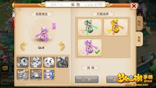 不论变异宠的携带等级为何,它的染色方案数量目前版本下都是固定的三个,而且消耗均为30个幻色丹。每个幻色丹的价格为28仙玉,也就是说只要840仙玉,就能给你的变异宠换上个性化色彩了!