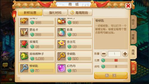 在每天的10:00~24:00的每个整点,系统会在建邺城、长寿村、傲来渔港、长安城、宝象国等场景投放一定数量的秘银宝箱,玩家只要在商城的新鲜玩意中花费58仙玉购买1个银钥匙即可开启一个秘银宝箱。