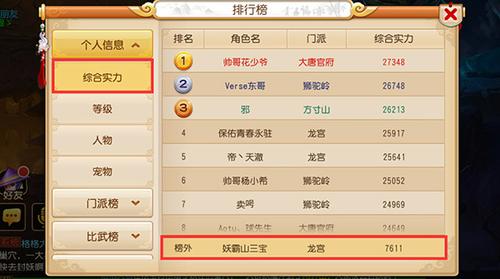 综合评分查看方法:点击排行榜→综合实力