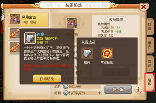 1、帮派技能中增加新技能——熔炼技巧。4级以上帮派,并且入帮14天以上的玩家,可以消耗银币和帮贡学习熔炼技巧。使用熔炼技巧技能可以生产钨金。