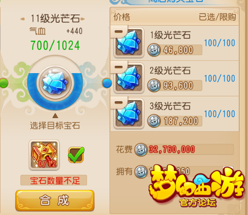 对于已经一套11级宝石的玩家来说,大概需要补上4万块可以从11级升到13级
