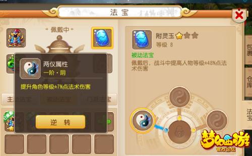 如果法宝进阶时获得的阴属性是提升角色等级2.8%法术伤害,那说明这是一个最低值,可以逆转成阳属性再逆转成阴属性来提高属性数值。