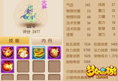 一只不值得去打高级兽决的法宝宝无非是技能格子不够这里小风总结为8技能以下,还有就是资质了!!但是又舍不得放生只能打低书过度或者换钱。