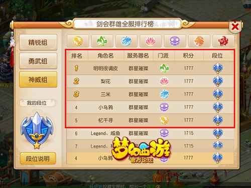 忆千寻:实话讲,我觉得运气成分占了很大比例。因为现在各个服务器的强人都很多,队伍的硬件都相差不大,所以在比武中,宝宝高神假不假,阵法克制等运气因素,有时起着至关重要的作用。虽然目前我们是第一,但是我知道在很大概率上,我们的第一只是暂时的,毕竟人外有人,天外有天。