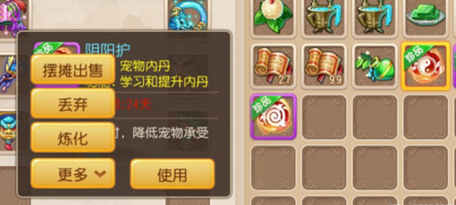 对自己不需要的内丹,除了可以摆摊出售给其他玩家以外,还可以对其进行炼化。