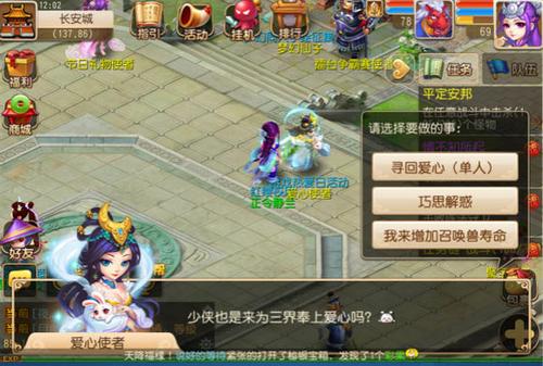 参与条件:≥40级单人找长安城的NPC爱心使者领取。